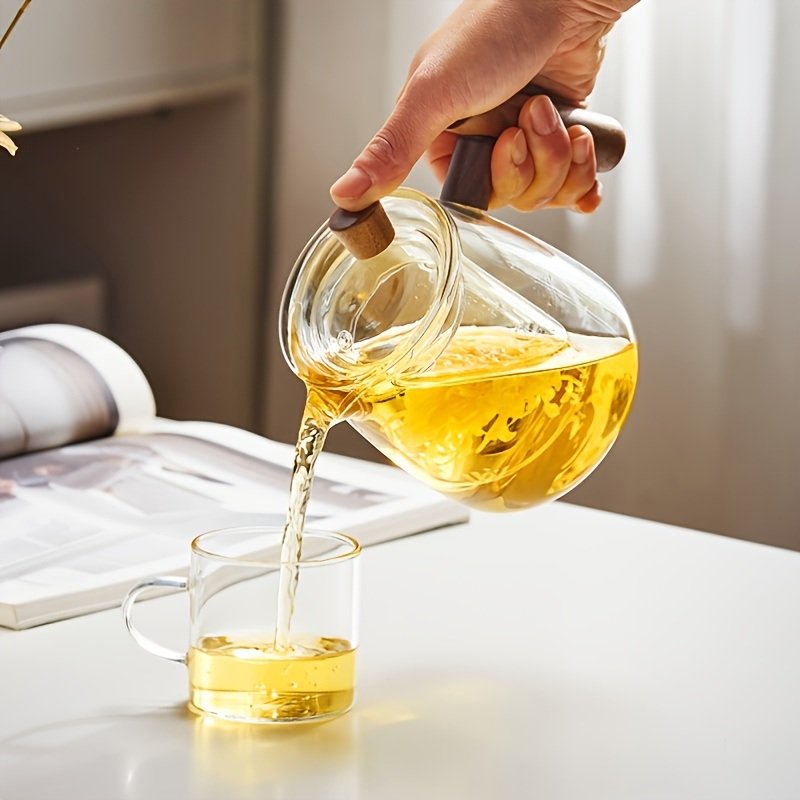 1pc High Borosilicate Heat-resistant Glass Teapot With Walnut Handle; 530ml/17.9oz; Removable Glass Filter; Transparent Tea Kettle