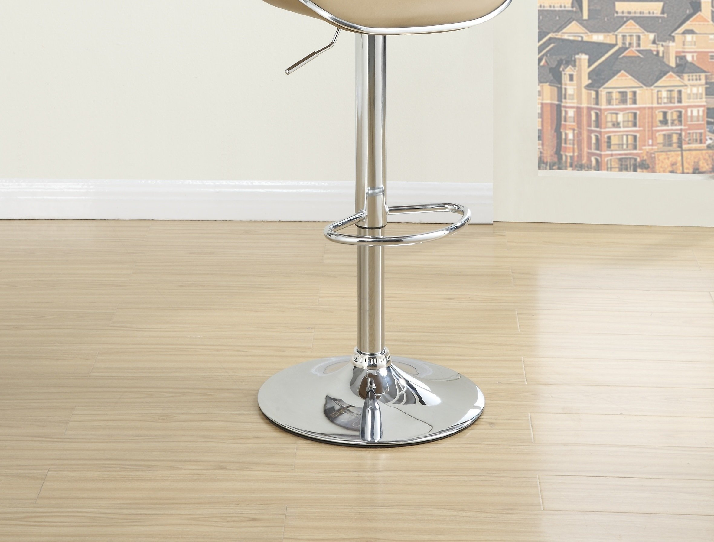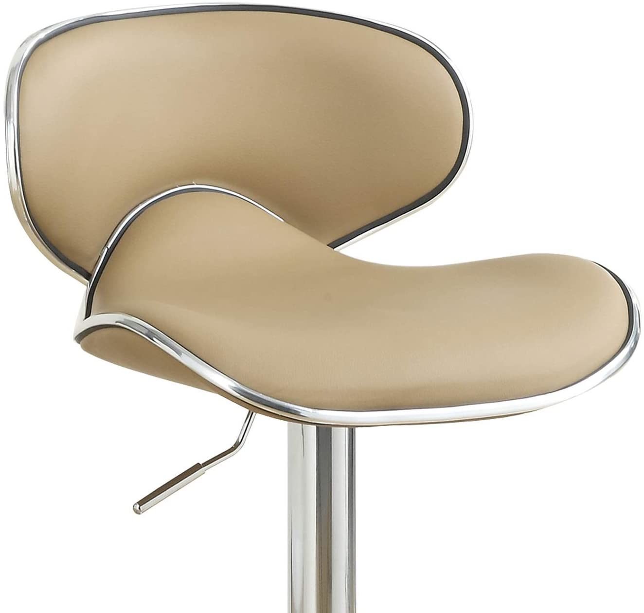 This bar stool featuring curved oval shaped back and silver accent lines design.The semi-circular footrest ensures relaxed sitting while the omni-directional seat makes for easy turn to any facing.