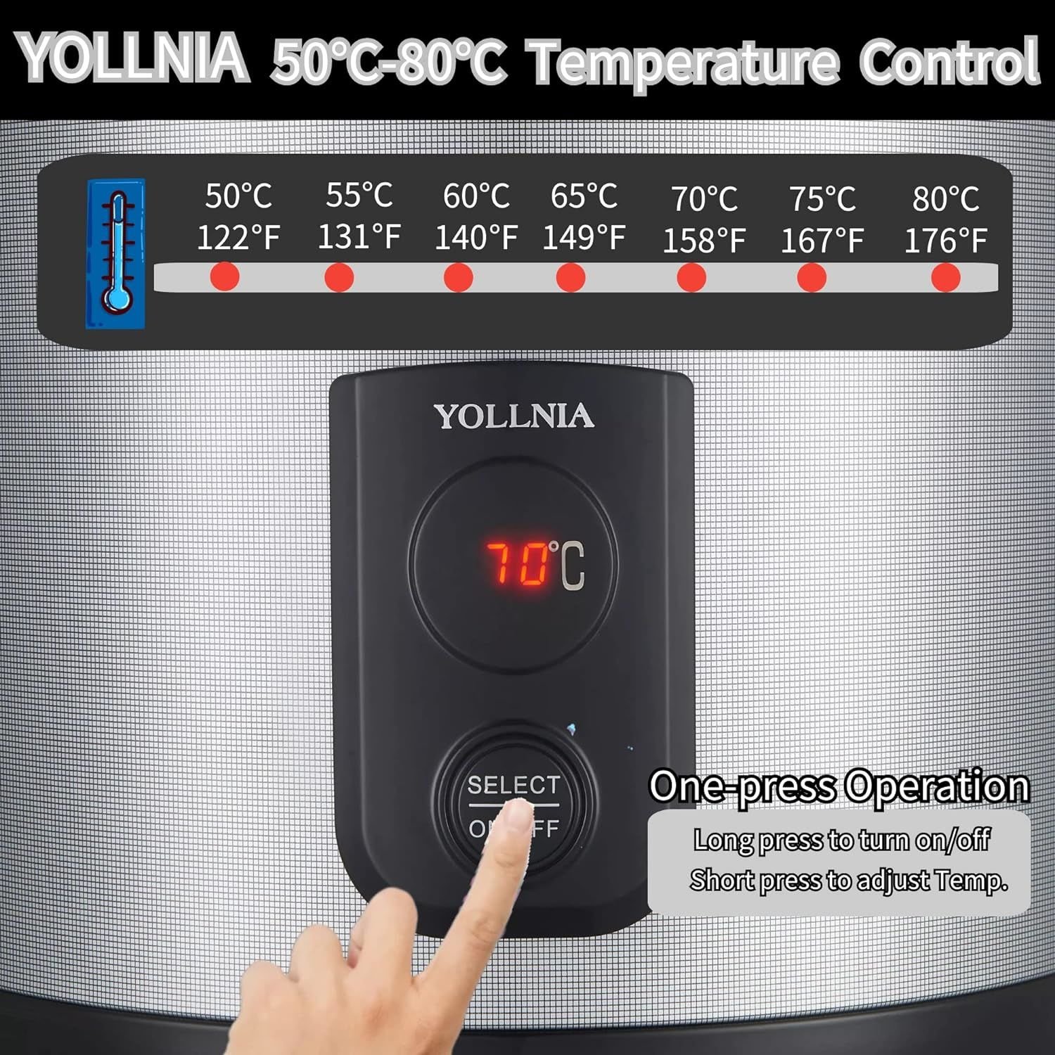 Controlable Temperature DisplayTemperature can be adjusted from 50~80 centigrade 122-176 ℉( 50-80℃) and 5°C intervals. Adjustable thermostat control just presses the knob and you can easily set the temperature you want! keeping delicious rice at an ideal temp and ready to serve.24 Hours Insulation FunctionThe commercial food warmer not only can keep prepared rice or food hot for more than 24 hours without altering the consistency, but also keep the food surrounded with the desired temperature.