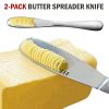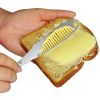 The serrated edge is easy to slice bread or butter; the butter knife is suitable for soften butter; do not use for hard butter.