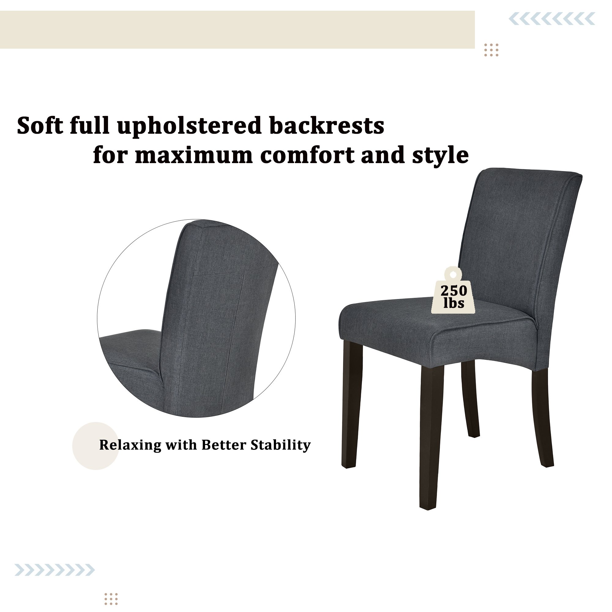 [Elegant Dining Chairs] Elevate your dining experience with this 6-piece dining set, complete with soft full upholstered backrests for maximum comfort and style. Each chair features a rustic design, perfectly adding the farmhouse look of the table. The set is perfect for hosting intimate gatherings or family dinners, adding both functionality and elegance to your living space.